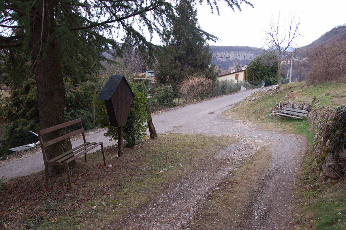 Dal centro della bella frazione, caratterizzata da edifici in pietra e una suggestiva chiesetta inserita tra le abitazioni, si sale a destra fino a raggiungere un capitello, dove si proseguirà a sinistra per